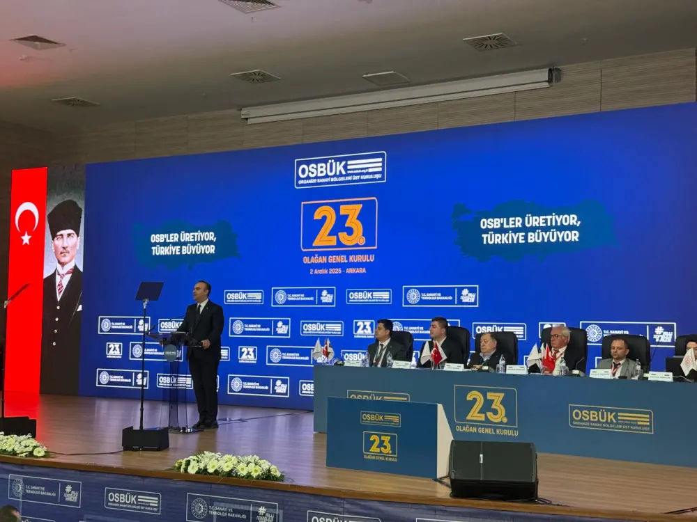 Organize Sanayi Bölgeleri Üst Kuruluşu (OSBÜK)’nün 23. Olağan Genel Kurul Toplantısı, KOSGEB Başkanlık binasında; Sanayi ve Teknoloji Bakanı Sayın M. Fatih Kacır’ın katılımıyla Ankara’da gerçekleştirildi. Toplantıda sanayinin bugününü ve yarınını ilgilendiren gündemler ele alınırken, OSB’lerin artan önemine vurgu yapıldı; birlik, koordinasyon ve planlı sanayileşme anlayışı gereği yeni adımların altı çizildi.