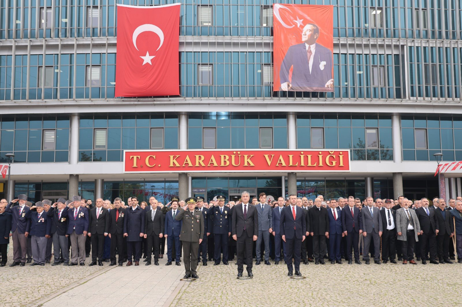Vali Sayın Mustafa Yavuz, Karabük Garnizon Komutanı Albay Murat Gürcan ve Karabük Belediye Başkanı Özkan Çetinkaya tarafından Atatürk Anıtına Çelenklerin sunulmasının ardından sirenlerin çalması ile birlikte saat 09:05’te Ulu Önder Mustafa Kemal Atatürk’ün anısına 2 dakikalık Saygı Duruşu ve İstiklal Marşımızın okunmasının ardından tören, Bayrakların yarıya indirilmesi ile sona erdi.